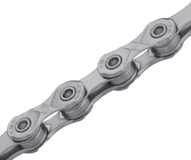 The extremely durable X1 EPT 10-speed chain from KMC without directional dependency and an EcoProTeQ surface coating for 10-speed derailleur systems.